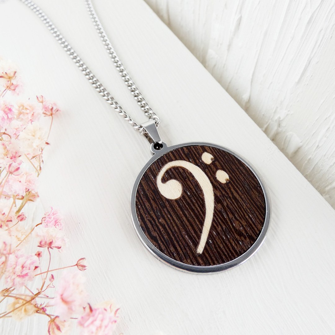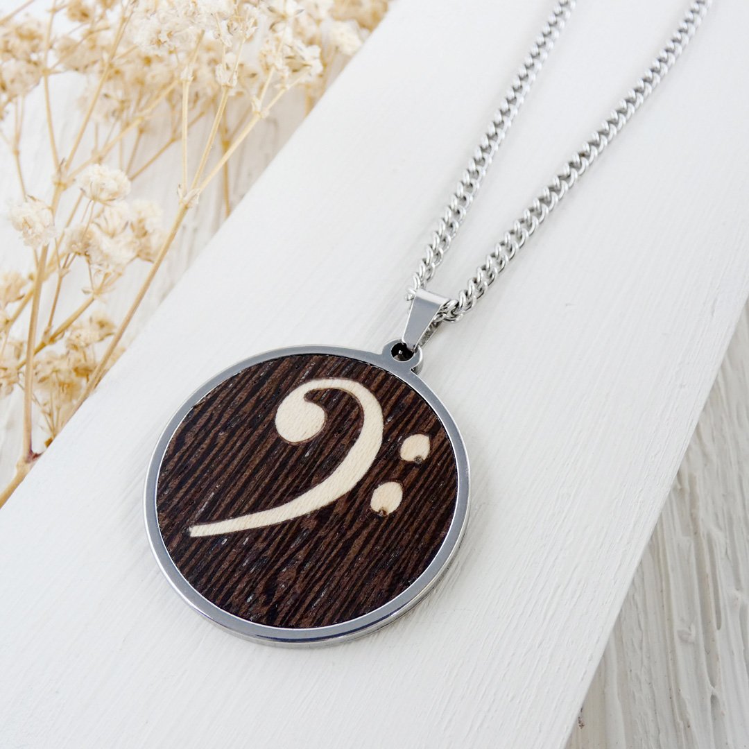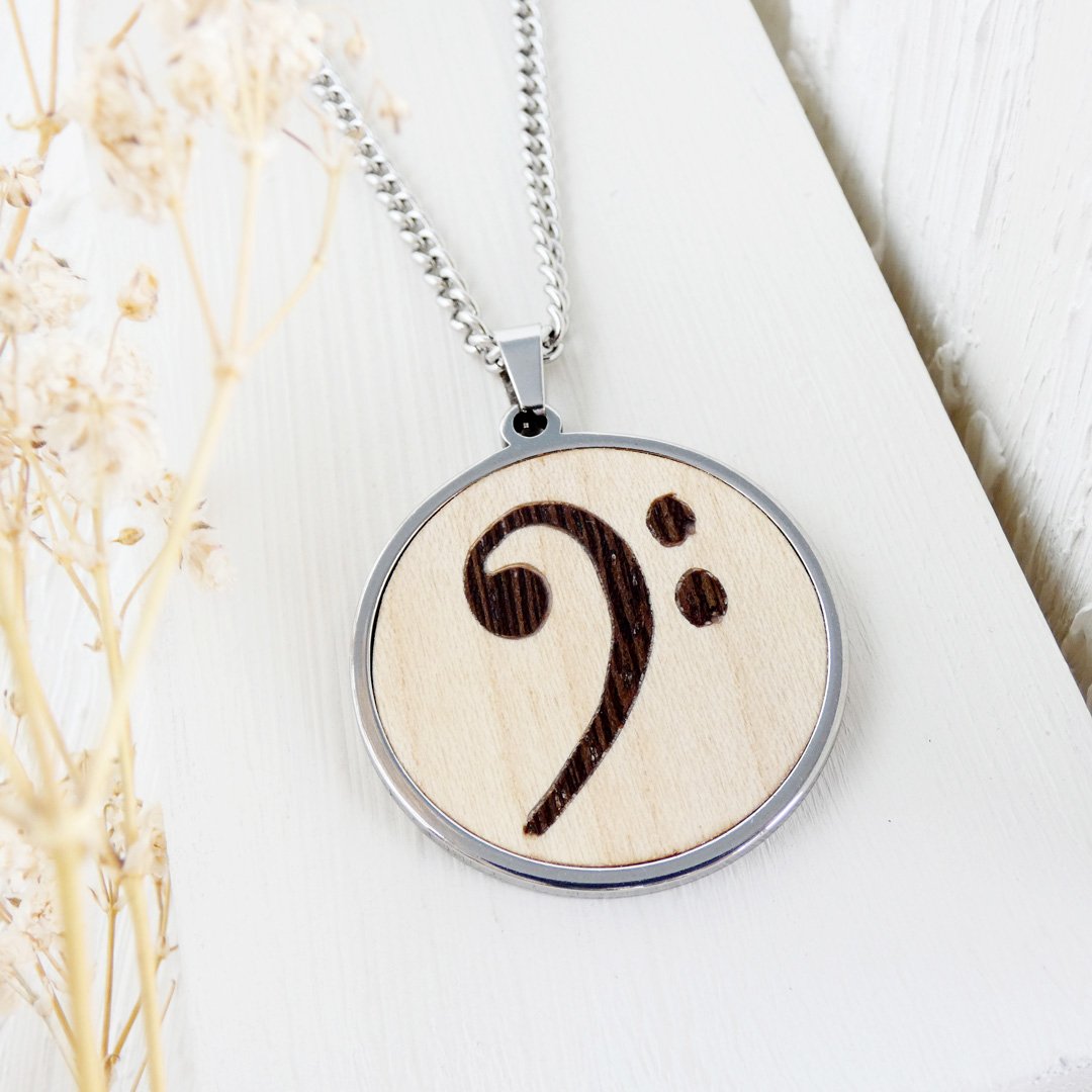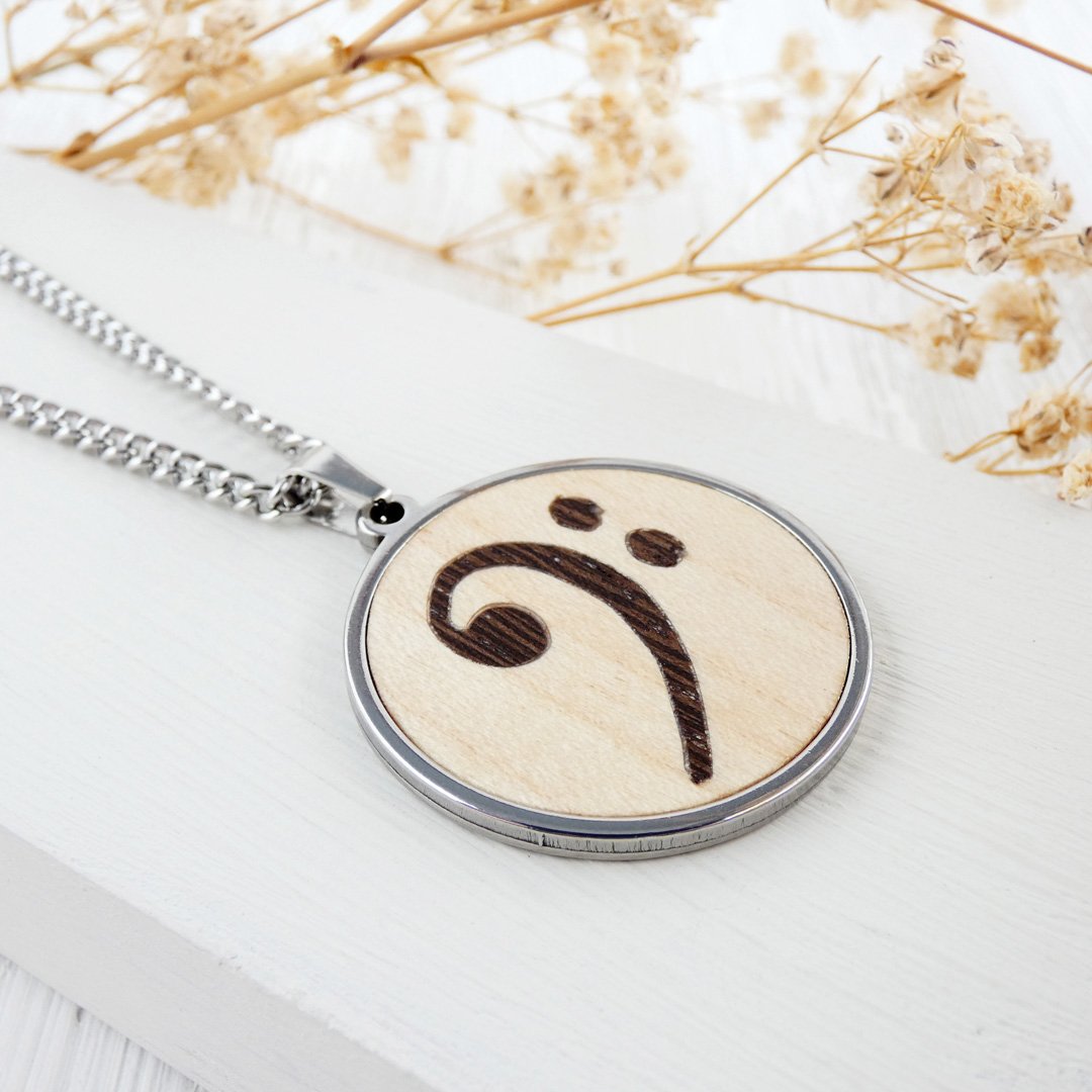 Colgante clave de fa de madera: El motor del rock en tu pecho
