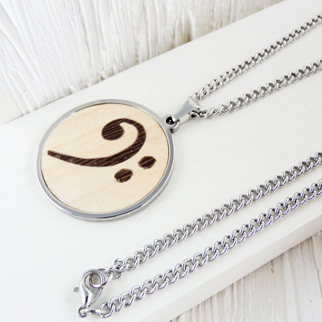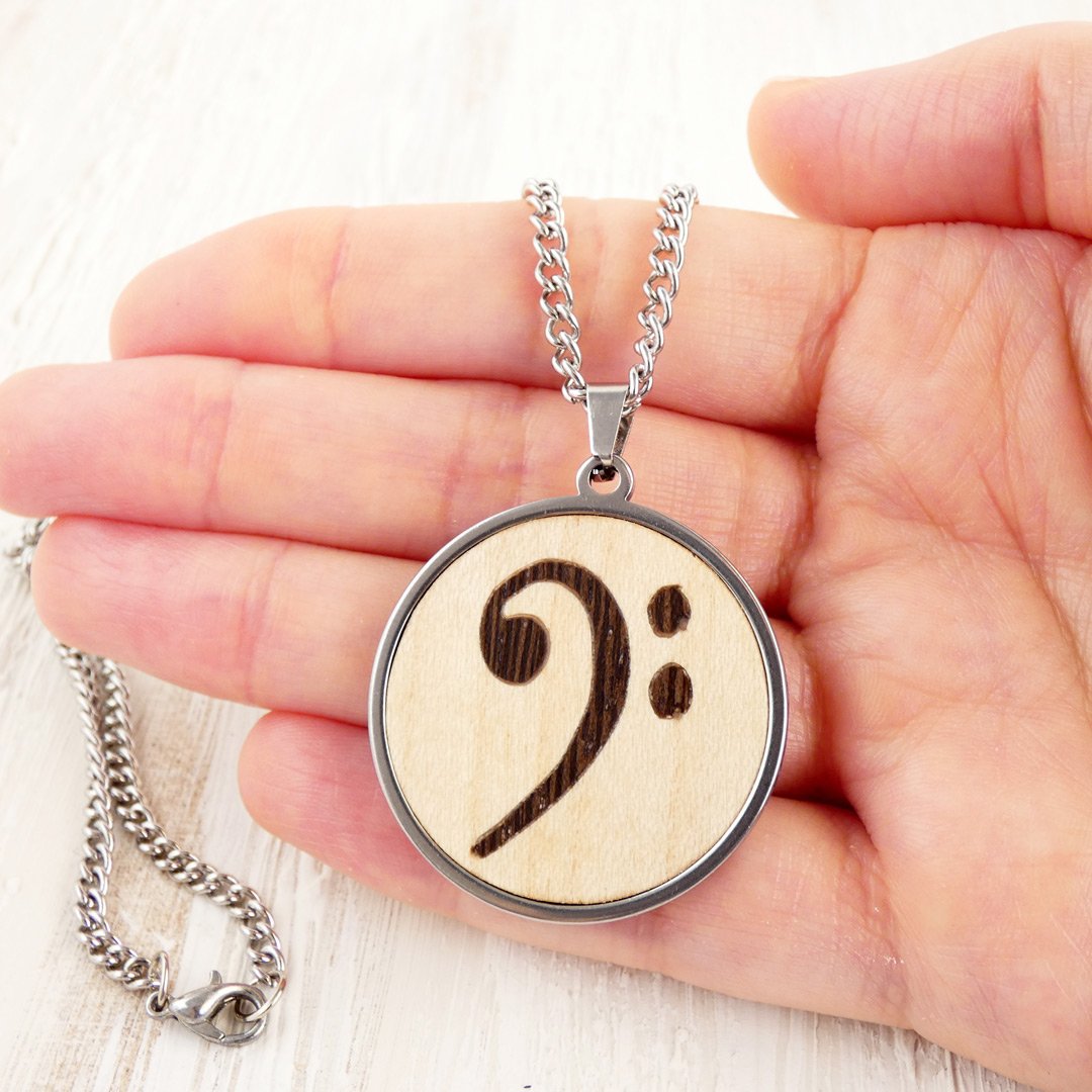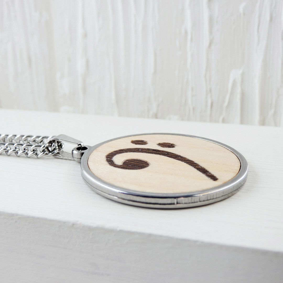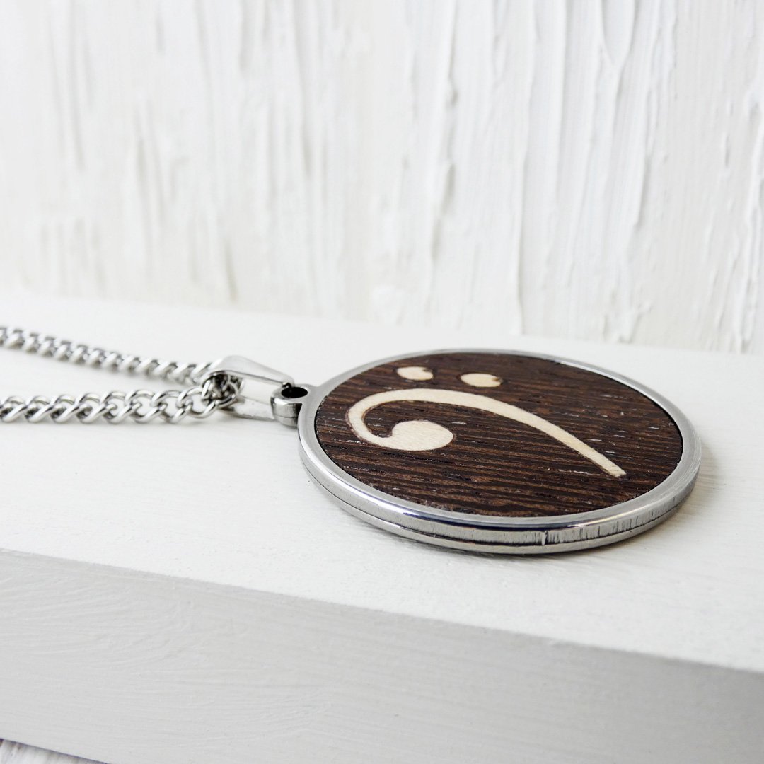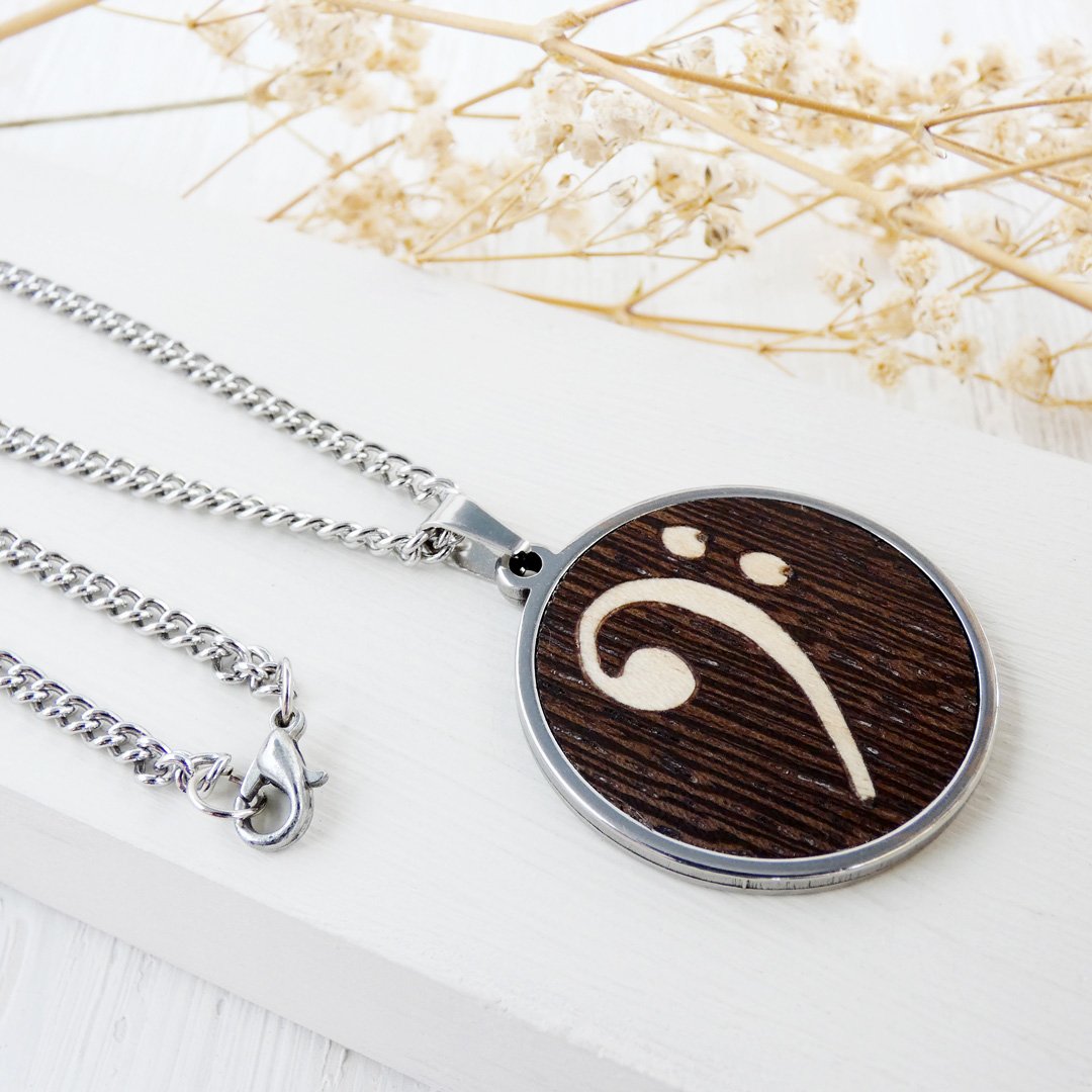 Colgante clave de fa de madera: El motor del rock en tu pecho