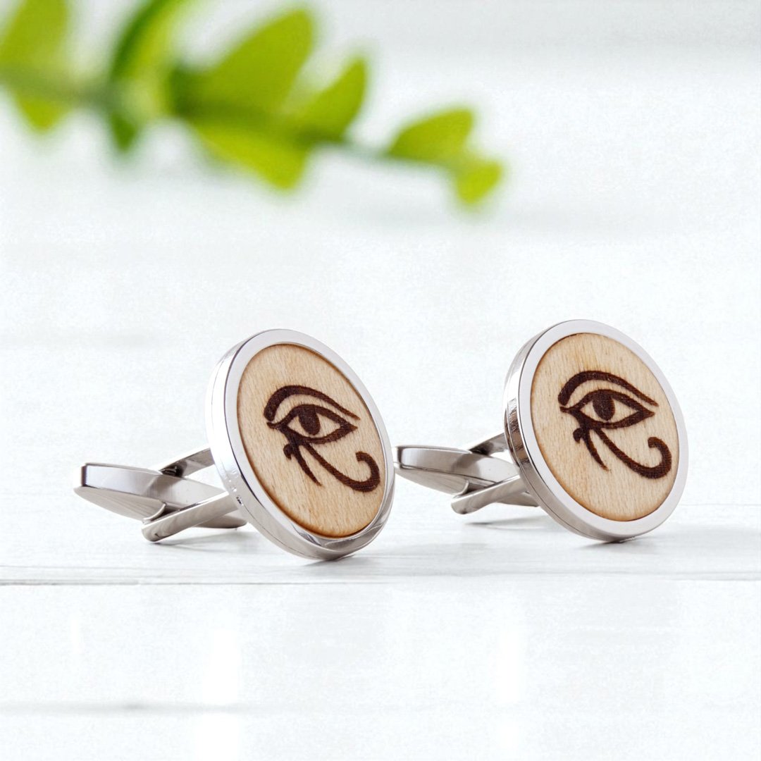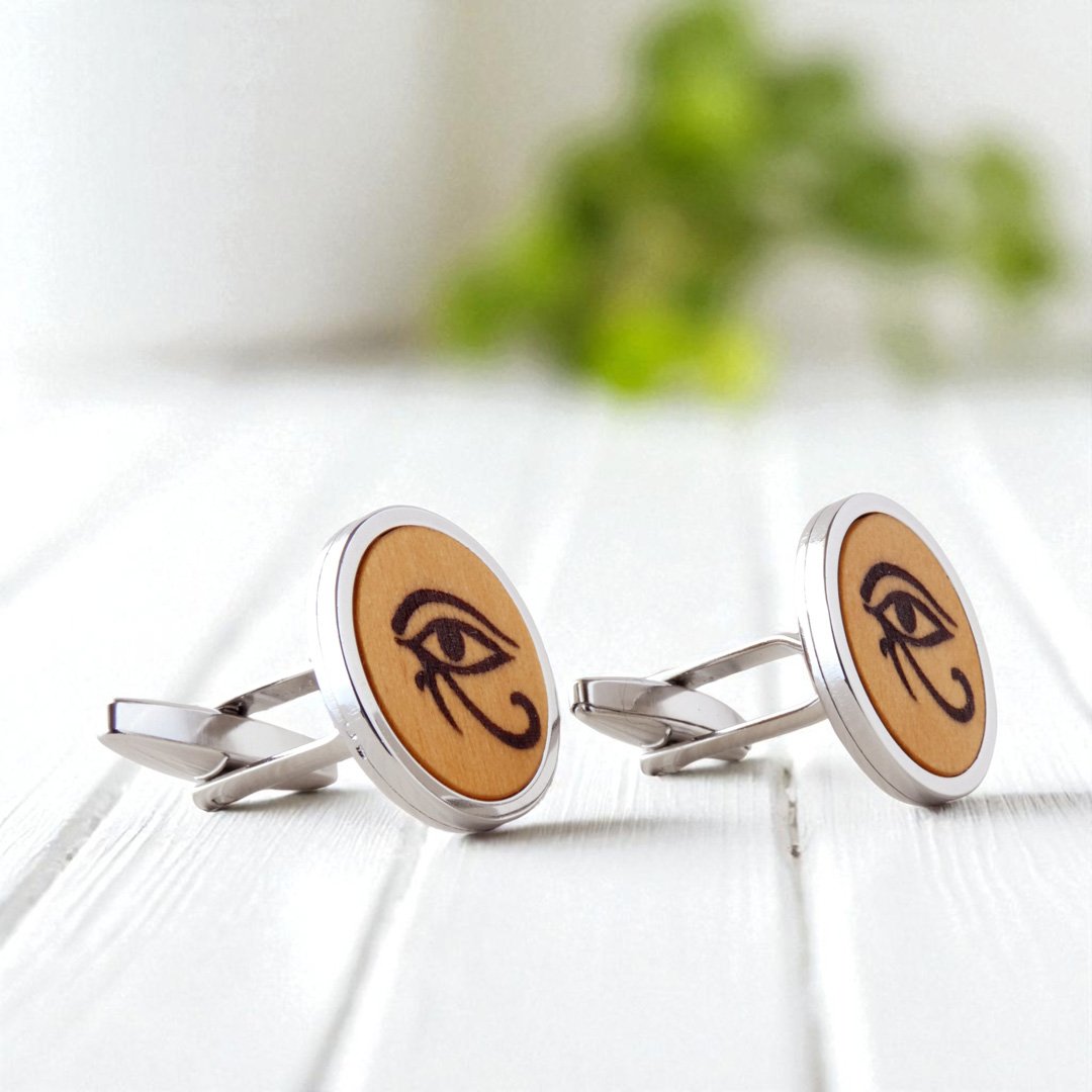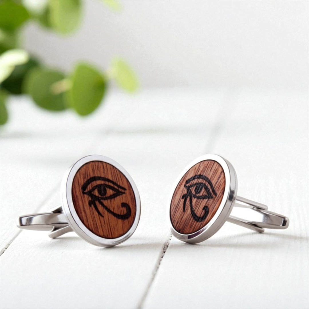 Gemelos Ojo de Horus de Madera: Vigilancia y estilo en tus puños