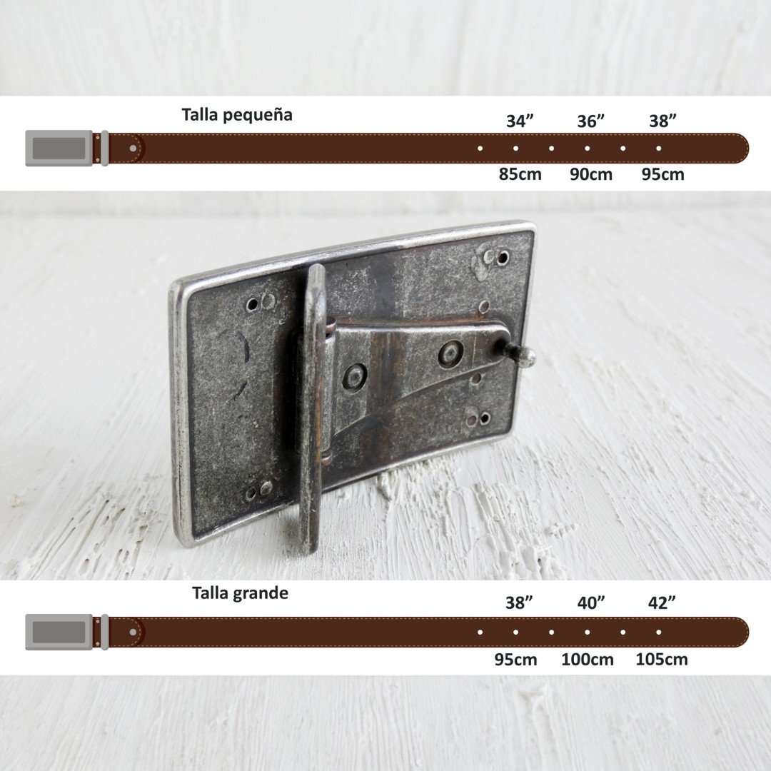 • Tallas sin líos: Disponible en Pequeña (85–95 cm) o Grande (95–105 cm). Y si ya tienes tu cinturón favorito de 4 cm de ancho, la hebilla es intercambiable. Tú decides cómo suena tu estilo.