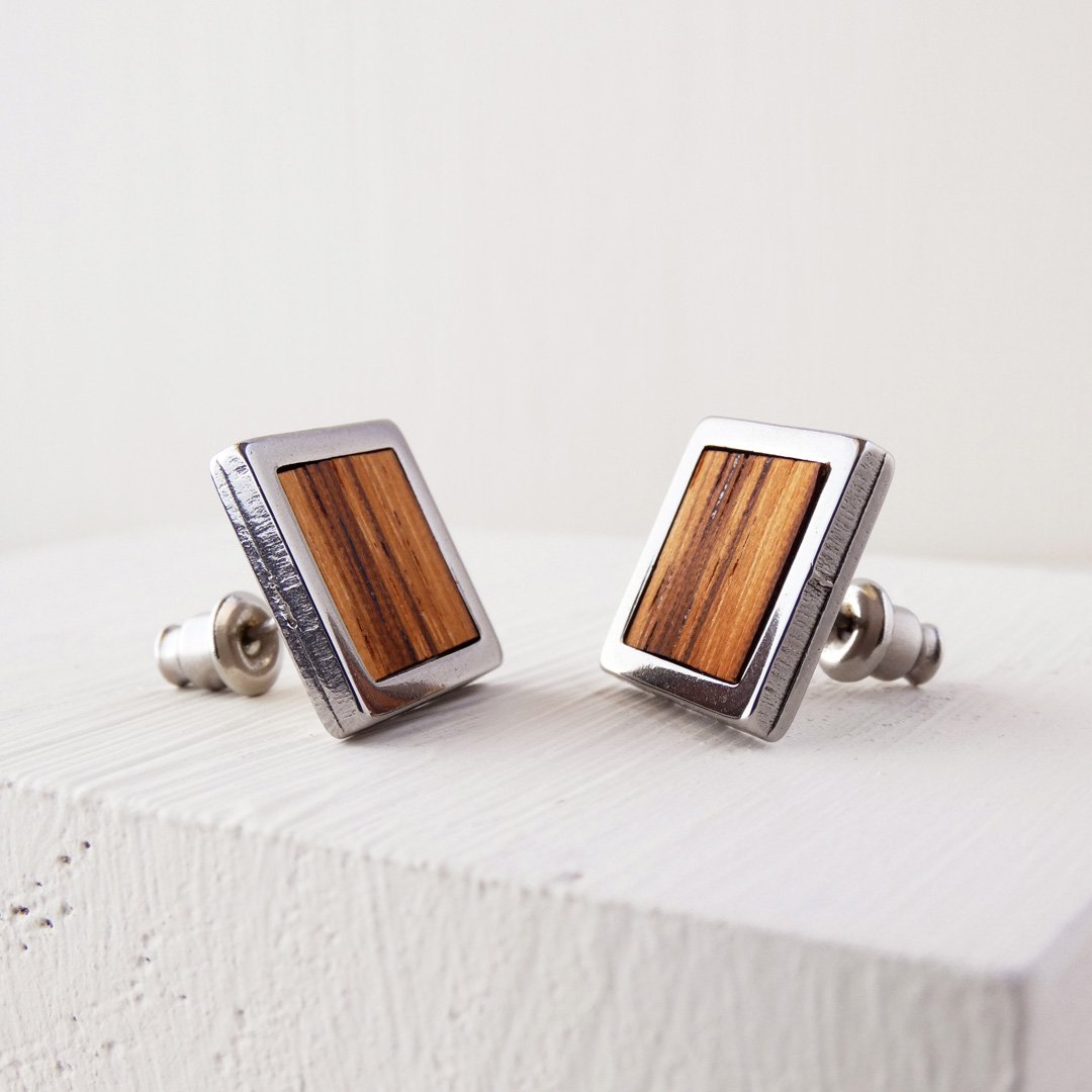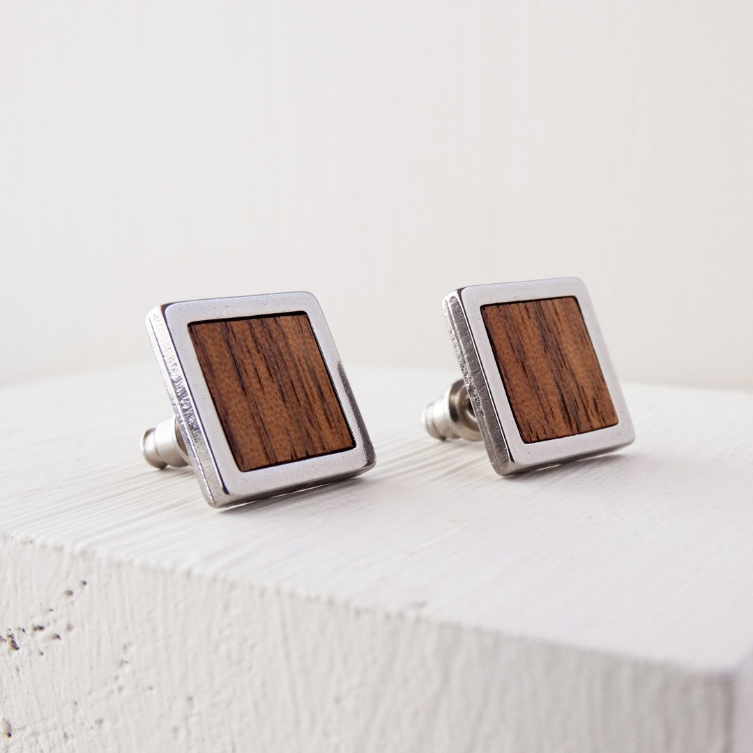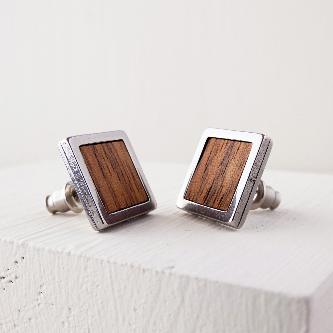 Pendientes Cuadrados de Madera y Acero Inoxidable