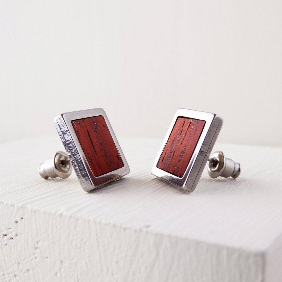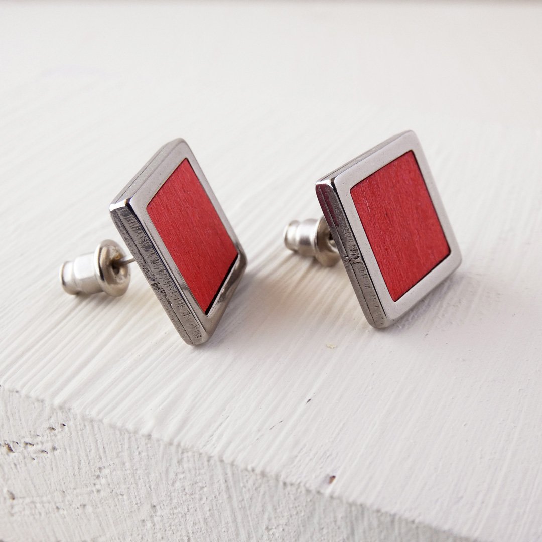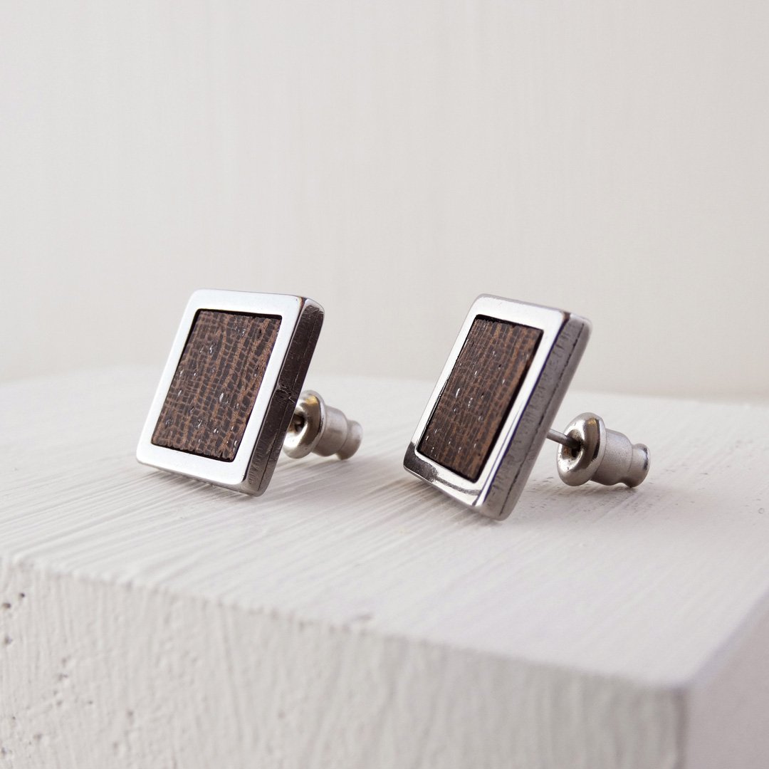 Pendientes Cuadrados de Madera y Acero Inoxidable